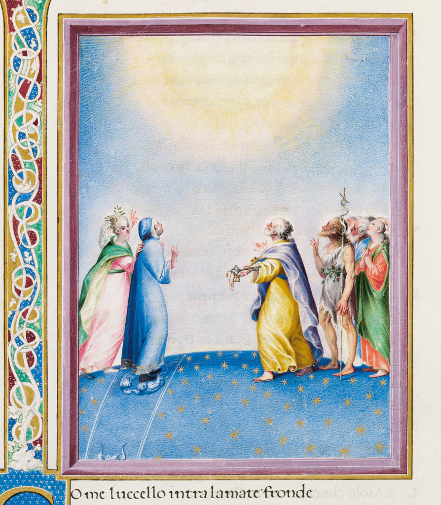 Miniatura tratta dalla Divina Commedia di Dante Alighieri, Ms. Urb. lat. 365, c. 262v, 1478-1482, Biblioteca Apostolica Vaticana.