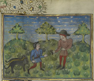 UN DOTTORE, UN CACCIATORE E TRE CANI MALATI, 1430 - 1440.
