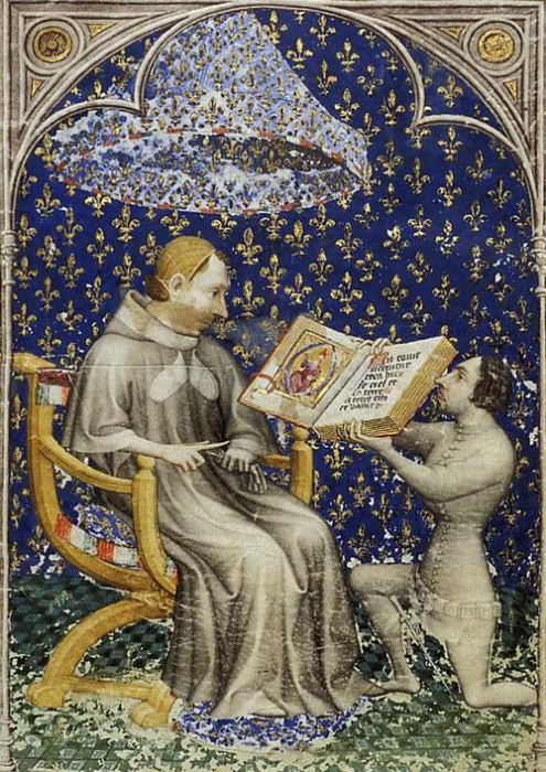 Jean Bondol - Jean de Vaudetar presenta la sua Bibbia a Charles V di Francia (c. 1372).