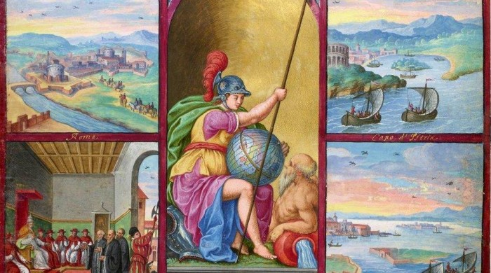 "Personificazione dell'Italia", illustrazione tratta da 'Voyages et aventures de Ch. Magius' (1578), Bibliothèque nationale…