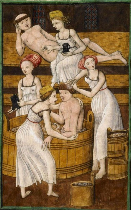 "Jena Code Antithesis Christi et Antichrist - Monks in the bath", IV.B.24 folio 78V c XVI secolo, Praga.