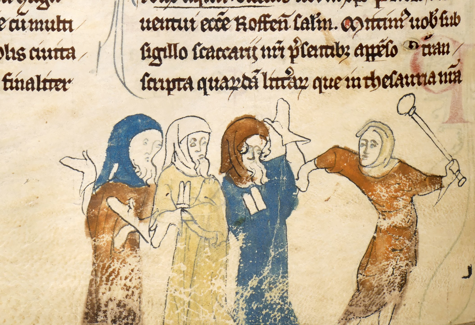 “Ebrei perseguitati”, miniatura tratta dal manoscritto “Cronache del Priorato della Cattedrale di Rochester”, ms. Cotton MS Nero D II, c. 183v, fra il 1100 e il 1650, British Library, Londra.