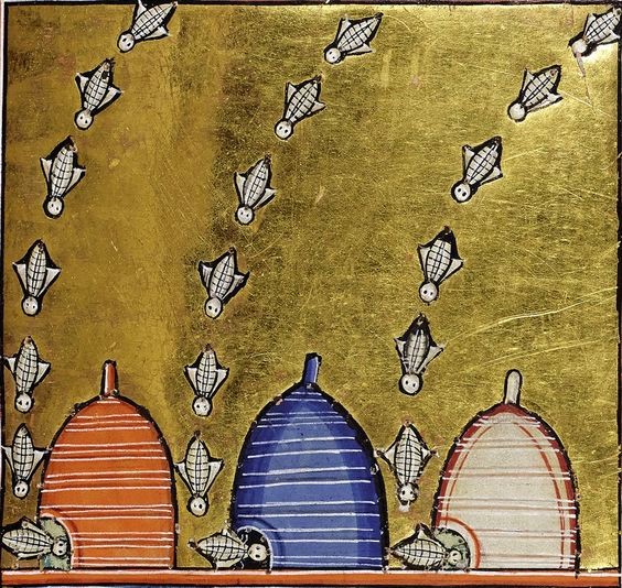 Fin dall’antichità alle api sono state attribuite numerose qualità, quali l’operosità, come mostra la miniatura, la concordia e la castità.