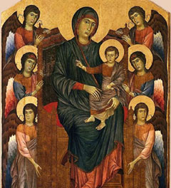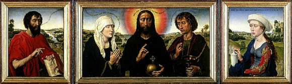 Qui ci sono alcune soluzioni al dilemma di Giotto. Rogier van der Weyden nel 1450 dipinse una aureola luminosa che permetteva allo sfondo di apparire.
