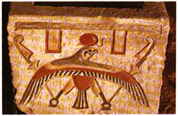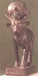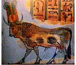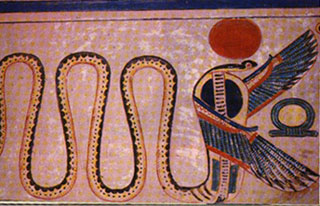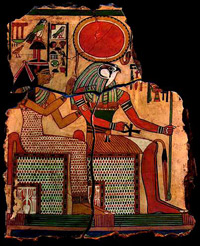 L’arte egizia era ricca di aureole di forma sferica e trovarne esempi non è difficile. Il Dio egizio Ra - di cui si credeva fosse stato creato da se stesso e che fosse padre di tutti gli dèi - era associato al Sole. Sekhmet dalla testa di leone, era una divinità mandata a punire il genere umano quando quest’ultimo non si degnò di onorare gli dèi. In questi casi le aureole erano i mezzi visivi per differenziare le divinità dai mortali; lo si può notare anche dall’assenza del nimbo su due partecipanti in piedi davanti a Sekhmet. Buto, la divinità cobra, era un dio del Basso Egitto, riconoscibile dal cerchio rosso che aleggiava sul suo capo.