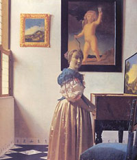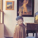 Alcuni sostengono che le aureole non erano interamente sparite; si mascheravano solo come cappelli e archi. Nell’Ultima Cena di Da Vinci, l’aureola sembra essere nascosta, ora rappresentata da un arco nello sfondo. È stato affermato che Vermeer usò questa struttura dell’immagine nello sfondo dei suoi dipinti per aggiungere un effetto aureola e in altri venivano usati cappelli e onde nel panneggio dei vestiti per approssimare una sorta di nimbo.