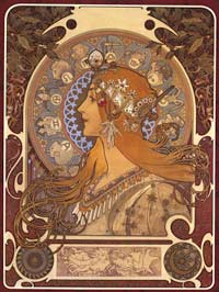 L’aureola appare anche nel movimento Art Nouveau nella fine del 1800 e inizio 1900. Alphonse Mucha, uno dei più famosi artisti del movimento, usava le sue competenze nelle arti decorative e nella pubblicità.
