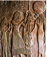 Le aureole egiziane sono spesso raffigurate come una grande sfera solare gialla, quindi diverse dalla nostra moderna concezione del nimbo, non si tratta infatti di un anello che si libra sulle teste dei soggetti rappresentati.