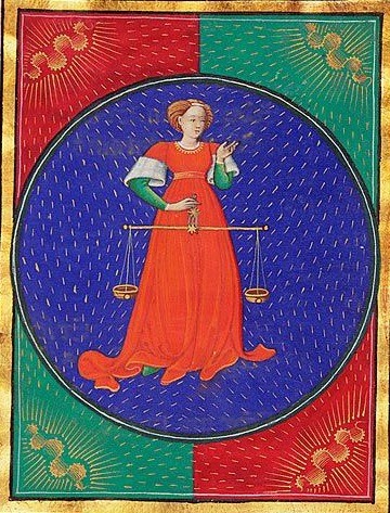 “Libra”, illumination from the “Book of Hours”, ms. G. 14, c. r, 1473, Morgan Library, New York.