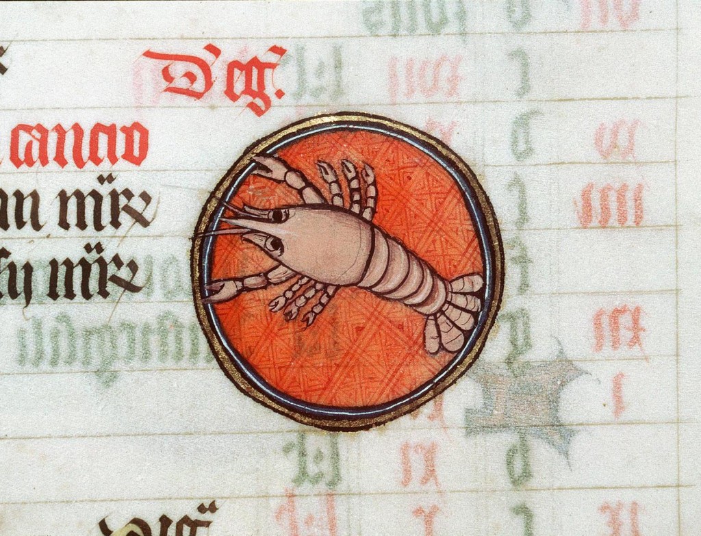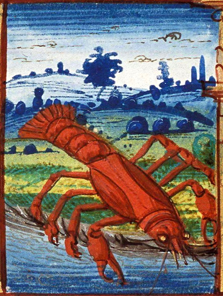 Da sempre il segno zodiacale è associato all'immagine del crostaceo, anche se nel tardo Medioevo molti miniatori - che forse non avevano grande familiarità con l'animaletto acquatico - hanno rappresentato il Cancro in modi diversi, e decisamente più bizzarri: dall'astice all'aragosta (che almeno sono parenti del granchio) a inaspettati ibridi a metà tra il ragno, lo scorpione e il coleottero. Ecco i 20 più spettacolari.