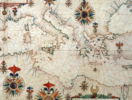 Mappa nautica del Mediterraneo, particolare (XVI secolo), Biblioteca Nacional de España, Madrid. Questo post fa parte della rubrica "Architecture & Maps" → https://goo.gl/slfz1 #map #mappa #mediterraneo #mare