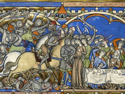 Miniatura tratta da “Lancelot en prose” (XV secolo), c. 99v, ms. Français 113, BnF, Parigi