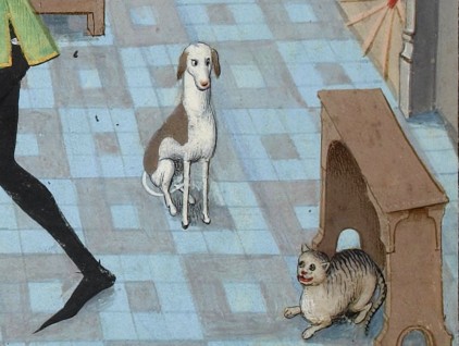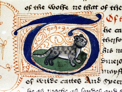 "Gatto cattura un topo", illustrazione tratta dall'opera 'Buch der natur' di Conrad de Megenberg (Germania, 1434), Bibliothèque nationale de France, Parigi.