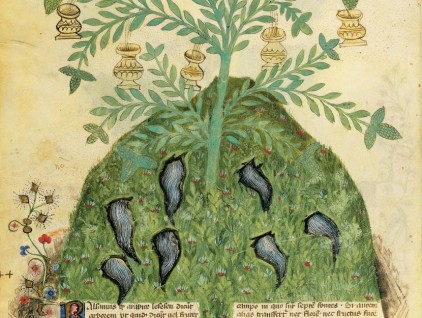 "L'argilla sciolta si pone nei cerotti da mettere sulle scrofole e sulle durezze: gli idropici e gli splenici velocemente traggono sollievo". Dal codice “Historia Plantarum”, fine XIV secolo → https://bit.ly/HistoriaPlantarum