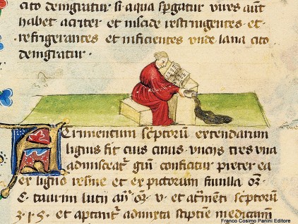 "L'atramento scrittorio proviene dal legno di teda. Si adatta, unito ai medicamenti con azione astringente, per arrestare la putredine. Giova anche certamente sulle scottature da fuoco unendolo all'acqua, al miele e all'olio". L'uso medicinale dell'atramento…