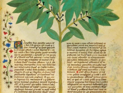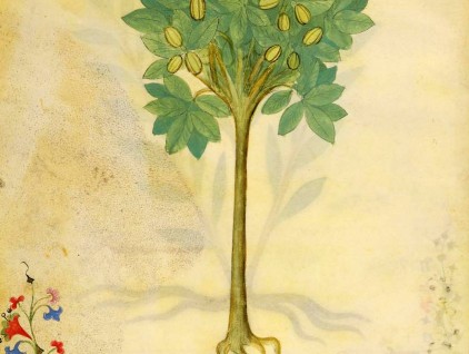 "Le foglie del corniolo, messe nel focolare con il loro legno, emettono una sostanza che, impiastricciata, combatte adeguatamente e sana le macchie della pelle." Dal codice “Historia Plantarum”, fine XIV secolo → https://bit.ly/HistoriaPlantarum