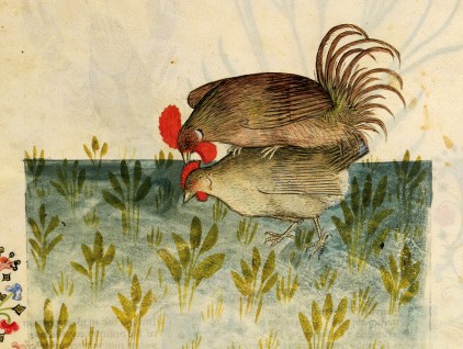 "La carne dei galli giovani fortifica la natura del coito, il brodo di gallo giova agli asmatici, la carne di gallina schiarisce la voce. Il cervello di gallina acuisce l’ingegno e secondariamente i nervi. Per…