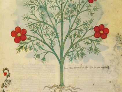 “La nigella, detta anche cumino nero, è amarognola donde gode di virtù diuretica. Molti mettono il suo seme nel pane. Assunta in grande quantità, uccide.” Dal codice "Historia Plantarum", fine XIV secolo