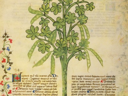 "La farina di lupini, se impiastricciata, arresta le macchie scure, i lividi maligni, le pustole del corpo. Lessata molto bene con acqua piovana schiarisce la pelle. Cotta con chameleone nero cura la scabbia dei quadrupedi."…