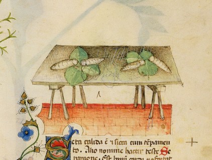 "Per Serapione la seta fa bene al cuore e chiarifica il sangue: viene usata come medicina pestandola nel mortaio insieme alle perle, ai granchi e ai coralli." Dal codice “Historia Plantarum”, fine XIV secolo → https://bit.ly/HistoriaPlantarum
