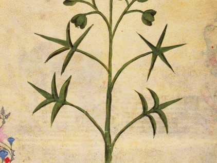 "Il seme di lino, con miele e pepe, stimola la pulsione venerea se preso in buona quantità. Il suo succo cura il dolore dell'intestino e lo spasmo dei luoghi segreti". Dal codice “Historia Plantarum”, fine…