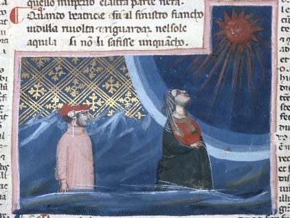"Giunone", miniatura tratta dal manoscritto"Ovide moralisé", ms. Fr. 176, c. 57r, 1380-1390, Bibliothèque de Genève, Ginevra. Il pavone andò da Giunone, mal sopportando che non gli avesse attribuito il canto dell'usignolo; questo sì che suscitava l'ammirazione di…