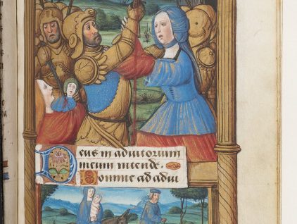 Miniatura tratta dal manoscritto “Horae Troyes”, ms. 651, c. 63r, XV secolo, Biblioteca Nazionale di Francia, Parigi. Illumination from the manuscript “Horae Troyes”, ms. 651, c. 63r, 15th century, National Library of France,…