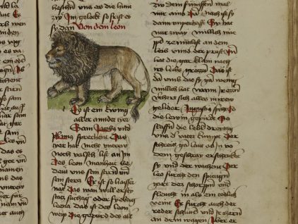 Miniatura tratta dal manoscritto “Buch der Natur”, di Konrad von Megenberg, ms. 2.264, c. 79r, XV secolo, Bibliothèque nationale et universitaire de Strasbourg. Illumination from the manuscript “Buch der Natur”, by Konrad von Megeberg, ms. 2.264, c.…