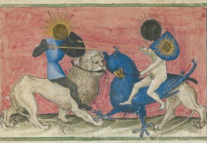 Miniatura tratta dal manoscritto “Aurora Consurgens”, ms. Rh 172, c. 10v-22, XV secolo, Biblioteca Centrale, Zurigo. Illumination from the manuscript “Aurora Consurgens”, ms, Rh 172, c. 10v-22, XV century, Central Library, Zurich.