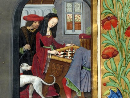 "Partita a scacchi", miniatura tratta dal 'Livre des échecs amoureux moralisés' (fine XV secolo), Bibliothèque nationale de France, Parigi.