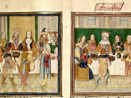 "Il banchetto di Assuero", illustrazioni tratte dal codice 'Speculum humanae salvationis' (1485-1509), British Library, Londra. Questo post fa parte della rubrica "Il pranzo della domenica" → https://goo.gl/A2zzz #pranzo #domenica #lunch #sunday