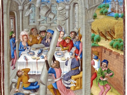 "La morte di Sansone", miniatura tratta dal codice 'Chronique de Baudouin d'Avennes' (1473-1480), British Library, Londra.