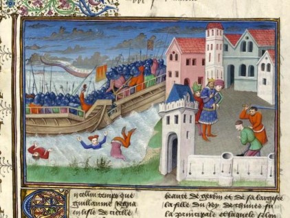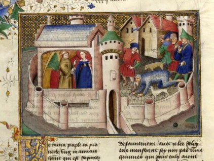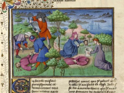 Quarta giornata, quarta novella: "Divisi da accordi familiari: i marinai del padre l'uccidono per non cederla a lui, disobbediente e perciò decapitato dal nonno". Miniatura tratta dal ‘Decameron’ (codice del XV secolo), Bibliothèque de l’Arsenal, Parigi. Leggi…