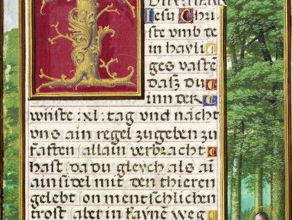 Iniziale "S" tratta dal 'Libro d'Ore di Alfonso d'Aragona' (Spagna, 1436-1443), British Library, Londra.