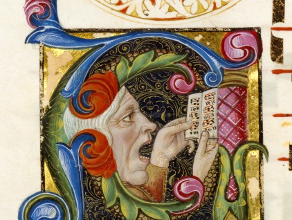 Iniziale "A" raffigurante un uomo che canta, tratta da Graduale (Italia, 1460 - 1480), Getty Museum, Los Angeles.