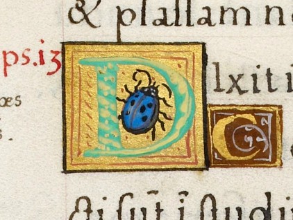 Iniziale "D" (Dixit incipiens in corde suo) tratta dal Salterio di Enrico VIII (1540-1541), British Library, Londra.