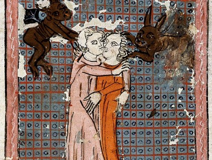 "I demoni della Lussuria tentano gli amanti", miniatura tratta dal 'Breviari d'Amor' (primo quarto del XIV secolo), British Library, Londra.