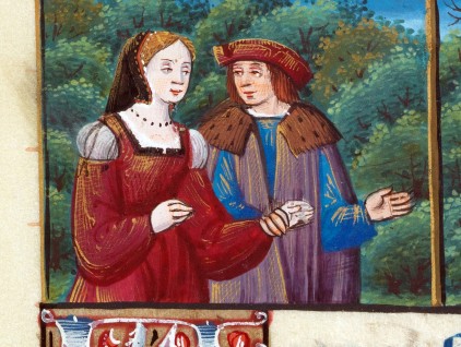 "Due amanti", miniatura tratta dal 'Libro d’ore di Agnes le Dieu' (1500-1510), Collezione privata, Svizzera.