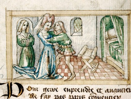 "Paride innamorato di Elena", illustrazione tratta dal ‘L’Epitre d’Othea di Christine de Pizan’ (1460 circa), Bibliothèque municipale, Lille.