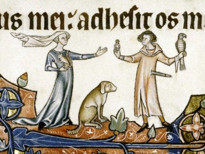 "Cavaliere dona l'anello a una dama", miniatura tratta dal 'Salterio Ormesby' (fine XIII-inizi XIV secolo), Bodleian Library, Oxford.