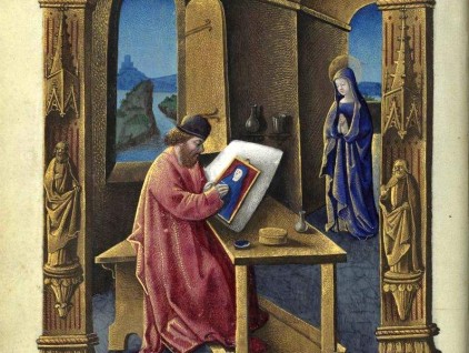 "San Luca ritrae la Madonna", miniatura tratta dal 'Libro d'Ore di Louis de Laval' (XV secolo), Bibliothèque nationale de France, Parigi.