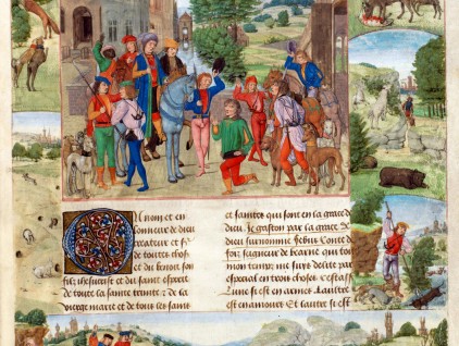 Pagina tratta dal 'Livre de la chasse' di Gaston Febus (1485), Bibliothèque de Genève.