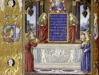 Pagina tratta dal Messale di Mattia Corvino (Firenze, 1485-1487), Bibliothèque royale de Belgique, Bruxelles.