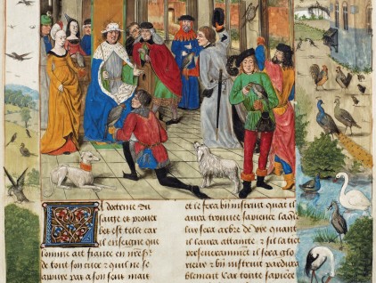 Pagina tratta dal 'Livre de l'art de chasser aux oiseaux' (Bruges, 1485-1490 circa), Bibliothèque de Genève.