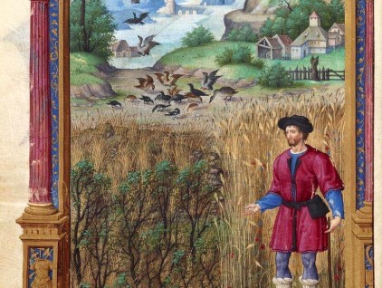 "La parabola del seminatore", miniatura tratta da 'La Paraphrase de Erasmede Rotredan sur l'Evangile sainct Mathieu' (Francia, 1539), Bibliothèque nationale de France, Parigi. La pagina illustra scrupolosamente il testo di Matteo: «Il seminatore uscì a seminare. Mentre seminava,…