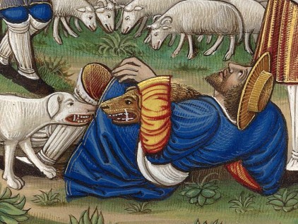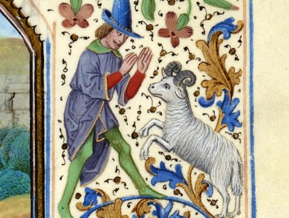 Particolare tratto da "L'annuncio ai pastori", miniatura tratta dal 'Libro d'Ore d'Étienne Alleaume' (XVI secolo), Bibliothèque de l'Arsenal, Parigi.