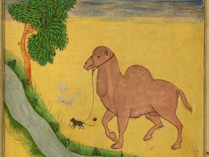 "Un topo salva un dromedario assetato guidandolo verso il ruscello", illustrazione tratta dalla Raccolta di poesie di Gialal al-Din Rumi (Persia, 1663), Walters Museum, Baltimora.