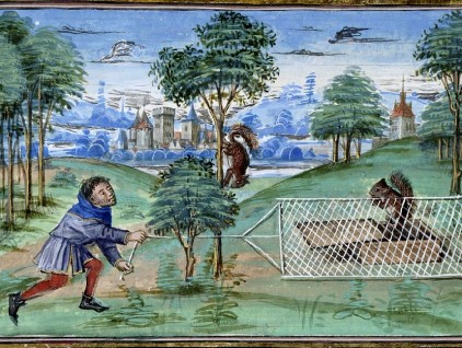Miniatura tratta dal 'Libro della caccia del re Modus' (1455), Bibliothèque royale de Belgique, Bruxelles.