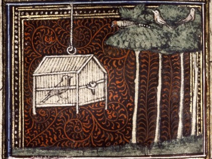 "Gufo", miniatura tratta da Messale (1555), Stiftsbibliothek, St. Gallen.