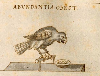 "Abundantia obest", illustrazione tratta da 'Symbola de mundi huius fallacia' (XVII secolo), Bayerische Staatsbibliothek, Monaco.